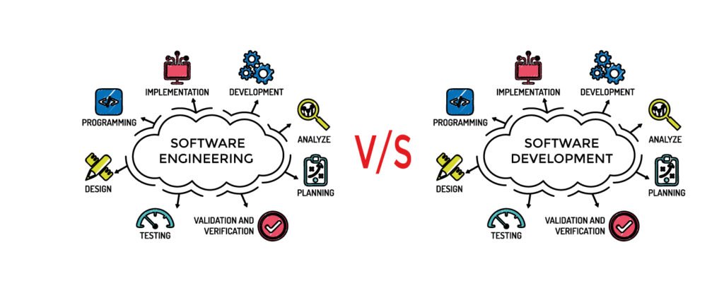 The main difference between a software developer and a software engineer is the scope of work. Developers focus on specific tasks, while engineers handle the entire process from concept to operation. Some roles for engineers overlap with developer responsibilities, depending on the organization.